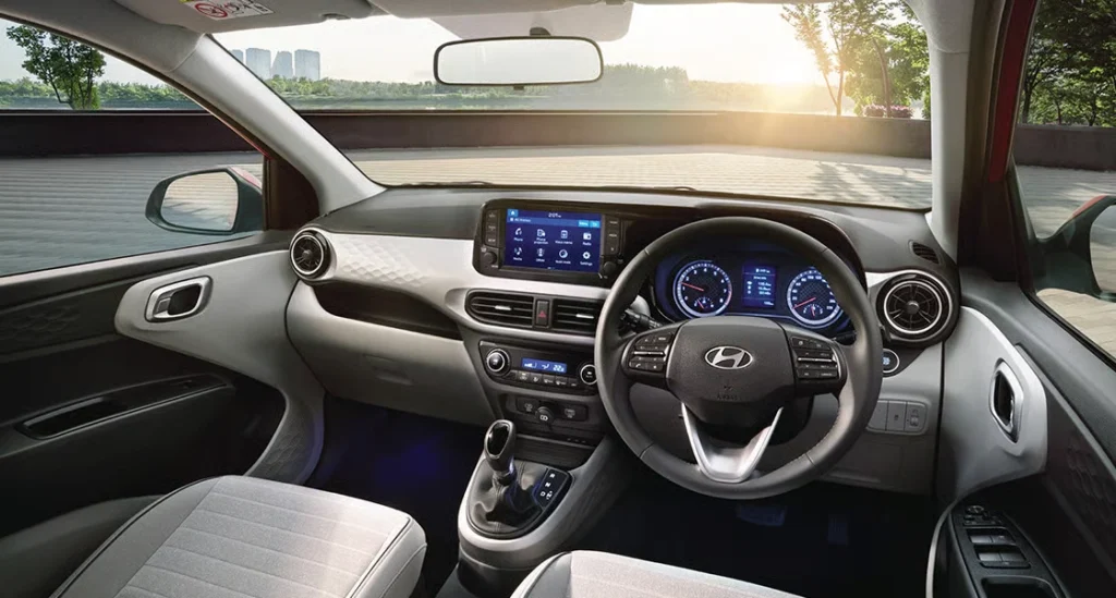 The Grand i10 Nios features an advanced and stylish look that includes a sporty grille, projector headlights, LED DRLs, and elegant alloy wheels. At its back, it consists of beautiful tail lights that are linked together by a reflector strip. This vehicle’s compactness gives it a great road presence in the city.